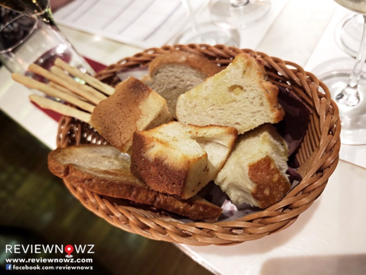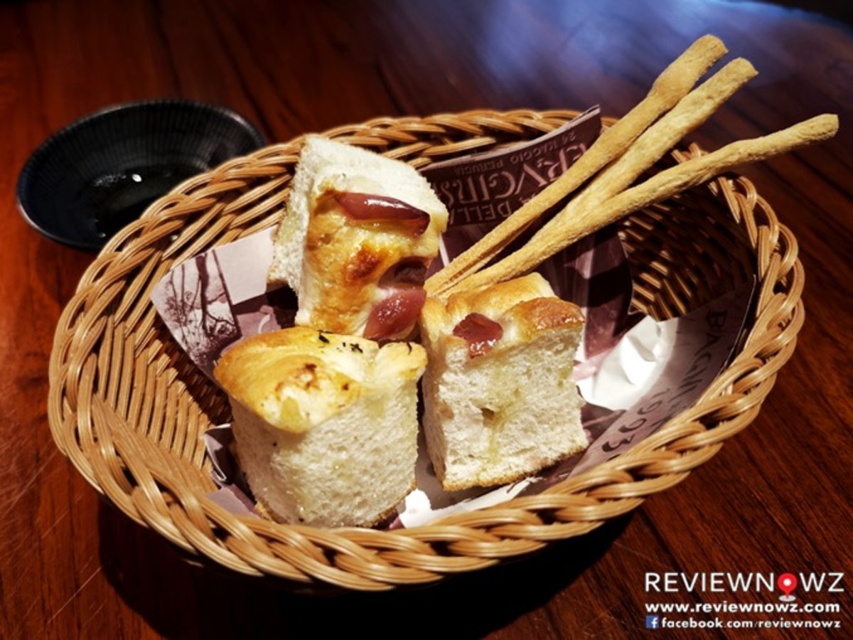 ต้อนรับด้วยฟรีขนมปัง เป็นฟอคคาเซีย (Focaccia) ที่โดดเด่นในทุกๆมิติไม่ว่าจะเป็นอุณหภูมิที่ร้อนกำลังทาน ผิวที่บางกรอบละมุน ตามด้วยเนื้อขนมปังที่มีความเหนียวนุ่มนวลละมุนลิ้น ไปพร้อมกับความหอมและรสชาติที่ทำให้รู้เลยว่าเชฟรู้จักและเข้าใจคนไทยเป็นอย่างดี