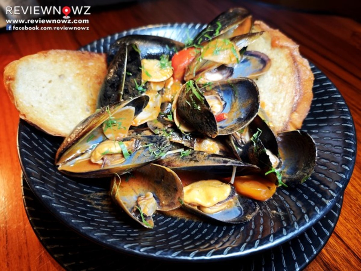 หอยแมลงภู่ black mussels ขนาดตัวคละกัน ทานแล้วเนื้อนุ่ม ปรุงรสเลือกเป็นซอส spicy tomato sauce ที่มีความเป็นมะเขือเทศบางๆไม่จัดมากเช่นเดียวกับความสไปซี่ที่มีพอเบาๆ เป็นเมนูที่ทานเล่นทานง่าย หรือจะเลือกเป็นซอสซอสไวน์ขาว (white wine sauce) ก็ได้ และไม่ลืมเอาขนมปังหวิดน้ำซอสที่ก้นจาน อร่อย ทำได้ดี