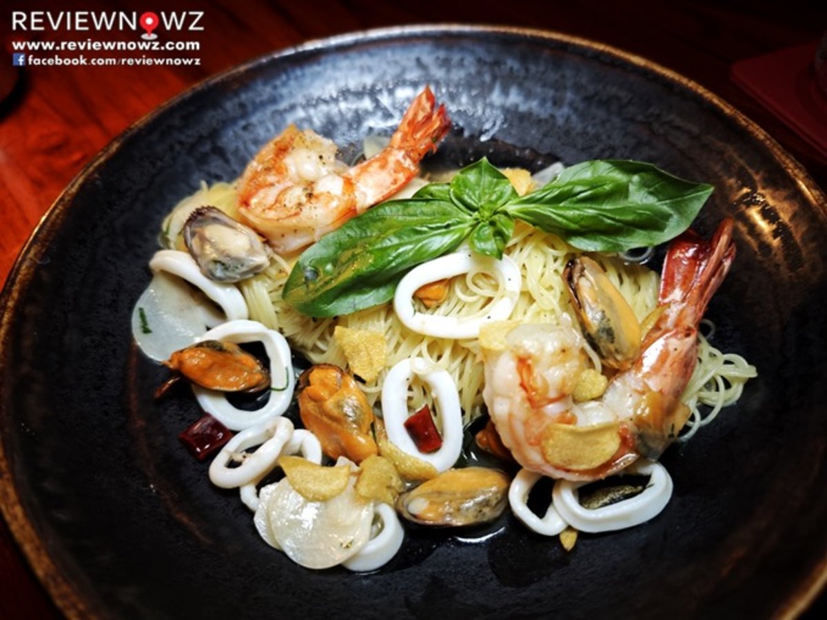 ปริมาณ 1 คนกำลังทาน เป็นพาสต้าเส้นแองเจิล แฮร์ (Angel hair) ที่เล็กและนุ่มตามมาตรฐาน เครื่องเคราเป็นหลากหลายวัตถุดิบซีฟู้ดที่ขนาดชิ้นดูดี มีความสดเนื้อดีทุกตัว ปรุงรสด้วยไวน์ขาว น้ำมันมะกอก พริกแห้ง คือความอร่อยที่เรียบง่ายสุดคลาสสิคของเมนูพาสต้าที่ชูเครื่องซีฟู้ดและเส้นพาสต้าให้โดดเด่น แนะนำ