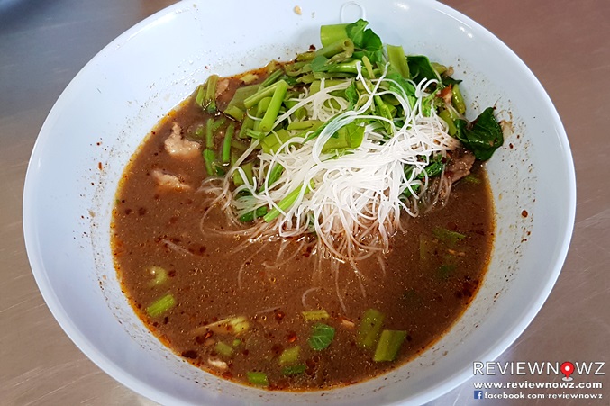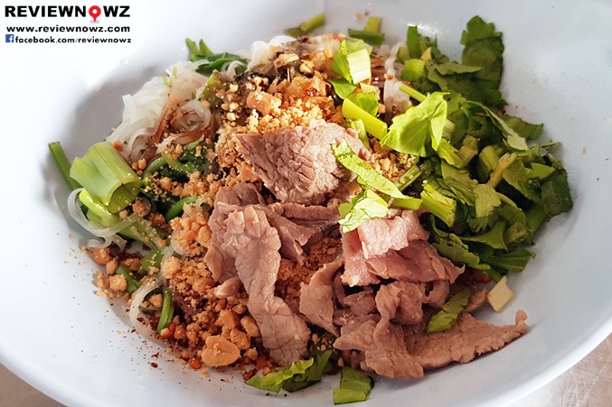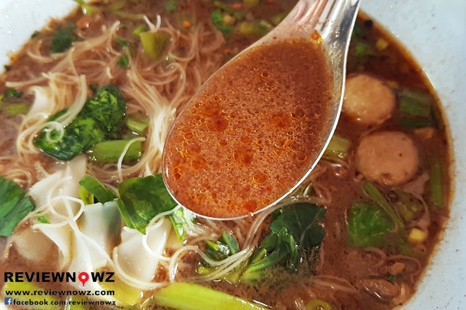 เส้นหมี่นุ่มมาตรฐานและเข้ากับเมนูน้ำตกได้ดีที่สุด เนื้อหมูเป็นแบบชิ้นเล็กหนาหอมนุ่มมีรสชาติในตัวเอง ตัวน้ำซุปโดดเด่นหอมเครื่องชัดปรุงรสเปรี๊ยวเค็มเผ็ดลงตัวนัวมาก แนะนำ