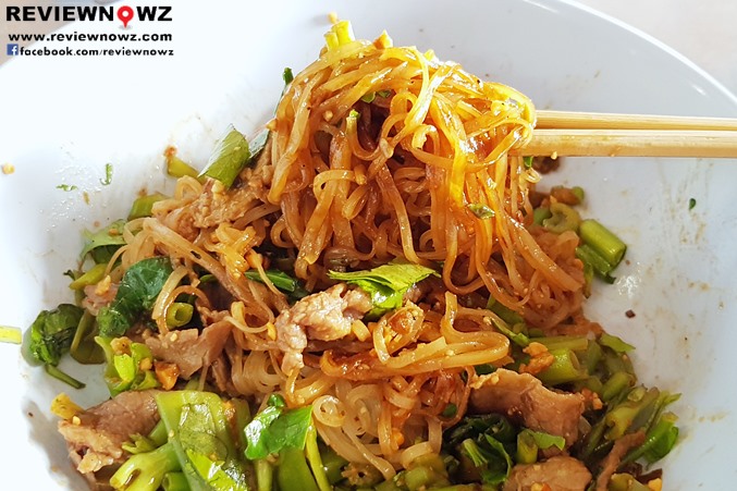 คลุกเคล้าให้ทั่วตัวเส้นจะฉ่ำๆหนึบหนับ หมูนุ่มไม่แห้งแข็งมีความหวานอยู่ ปรุงรสเข้มข้นลงตัวมีเผ็ดพอเบาๆ อร่อยมาก แนะนำ
