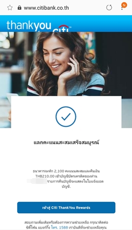 เมื่อกดทำรายการจะขึ้นหน้ายืนยันเป็นอันเรียบร้อย สามารถตรวจสอบธุระกรรมนี้ได้จาก Statement ของบัตร