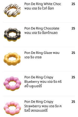 มิสเตอร์ โดนัท มีโปรโมชั่นกับ แกร็บฟู้ด (GrabFood) ฟรีโดนัท 2 ชิ้น (ไม่เกิน 22 บาท) เมื่อสั่งพอน เดอ ริง (Pon de ring) จำนวน 5 ชิ้น