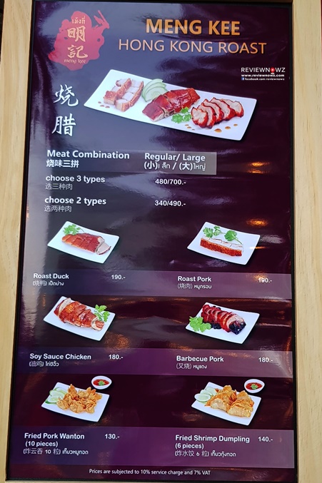 รายการอาหารของร้าน เม้งกี่ ฮ่องกง โรสท์