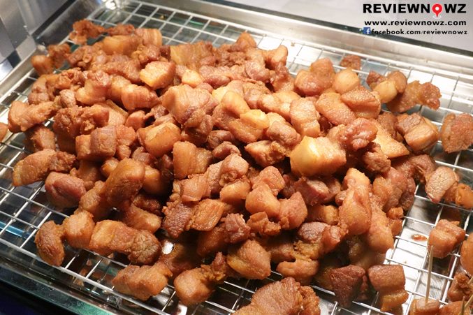 เป็นเนื้อหมูช่วงท้องหั่นชิ้นใหญ่หนาเต็มๆทอดในน้ำมันใหม่ๆดูดี