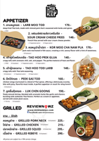 ปลาหมึกย่างเสียบไม้ โดดเด่นด้วยควาหอมของปลาหมึกย่าง แต่ทานแล้วเนื้อแห้งจนติดไม้และมีความแข็งกระด้างน่าเสียดาย และเครื่องลาบรสอ่อนเช่นเดิม