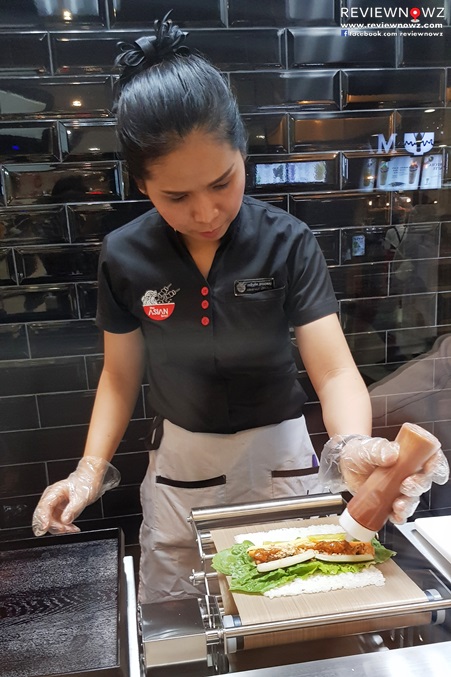 สำหรับเมนูข้าวห่อสาหร่ายทางร้านจะทำสดใหม่โดยใช้เครื่องห่อสาหร่ายอัตโนมัติซึ่งเราสามารถยืนดูเชฟทำใกล้ๆได้เลย