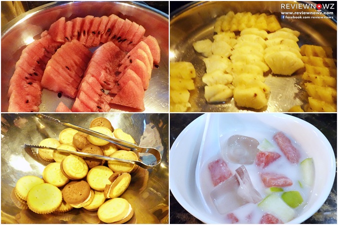 ผลไม้สด แตงโม สับปะรด คุ๊กกี้ และ ขนมหวาน